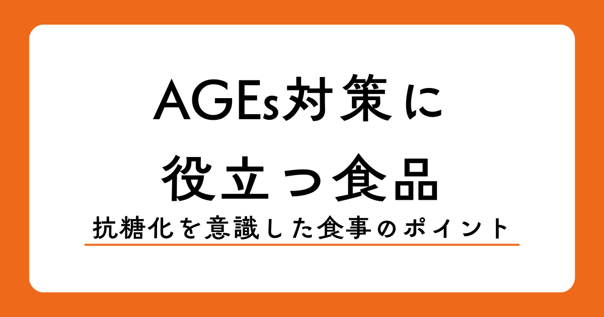 食事由来のAGEs摂取を抑えることに加え、抗酸化作用をもつ食品や血糖値の急上昇を抑える食品を取り入れることも重要とされています。