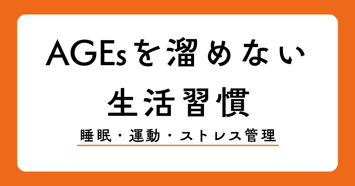 AGEsは食事だけでなく、睡眠・運動・ストレスといった生活習慣とも関連が報告されています。